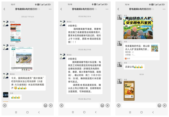 與山西攝影家協(xié)會、新華社、山西電視臺、人民攝影報等專業(yè)機構(gòu)、媒體合作,與文物、鄉(xiāng)村振興等政府部門對接,邀請利益相關(guān)方走進保供和服務(wù)現(xiàn)場,深入鄉(xiāng)村振興、文物保護、非遺傳承一線舉辦聯(lián)合采風(fēng)活動。邀請主流媒體記者和基層通訊員聯(lián)合組建“電約拍”微信群,實時共享拍攝需求,暢通快速投稿、發(fā)稿渠道,利用主流媒體平臺提升影像作品傳播力引導(dǎo)力影響力公信力。